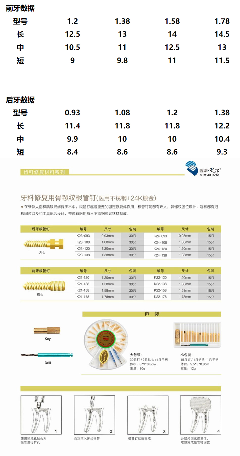 产品名称:扁头型(前牙)根管桩 24K镀金前牙骨螺纹根管桩