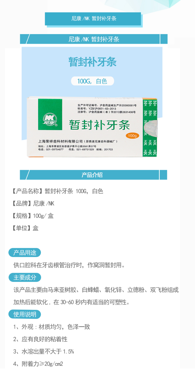 产品名称:暂封补牙条