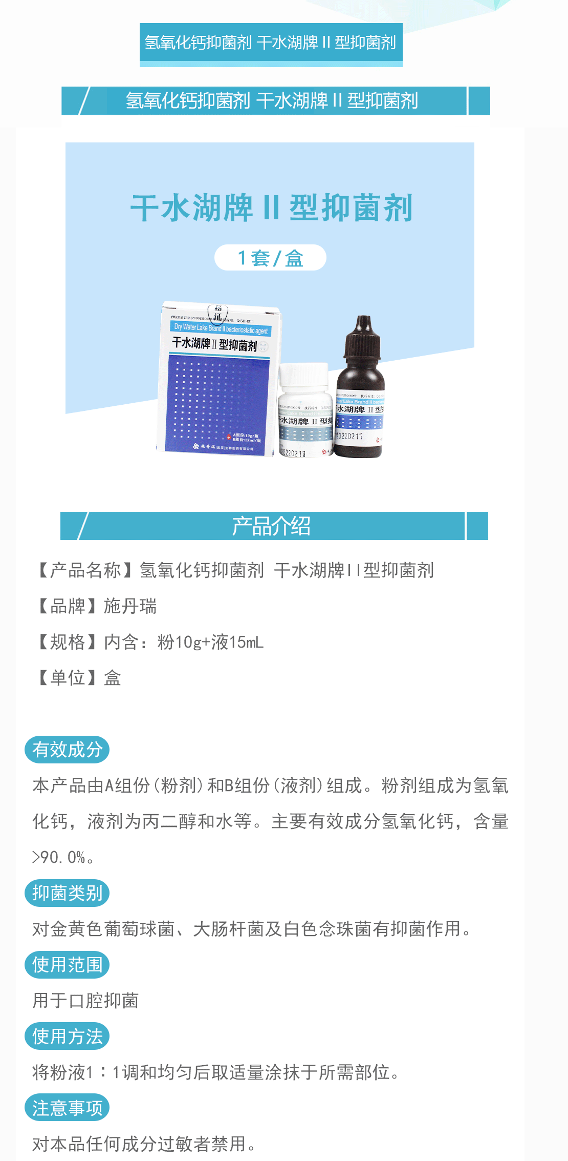 产品名称:氢氧化钙抑菌剂 干水湖牌II型抑菌剂
