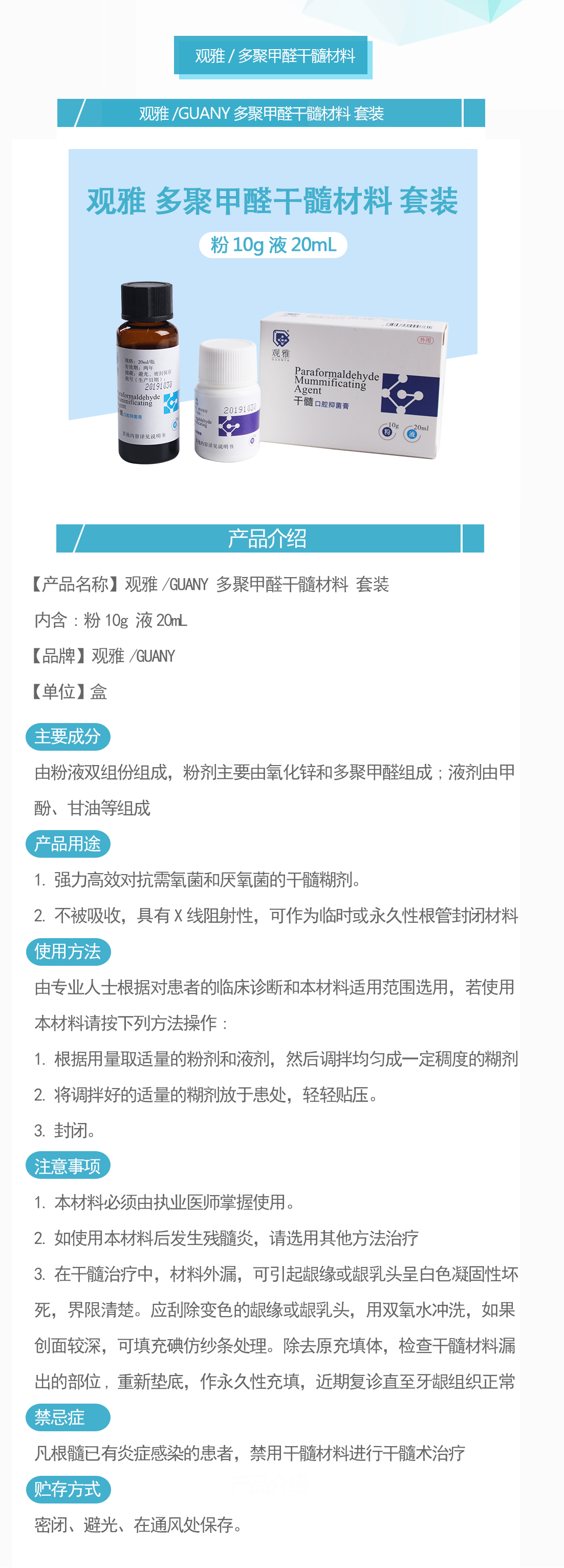 产品名称:多聚甲醛干髓材料