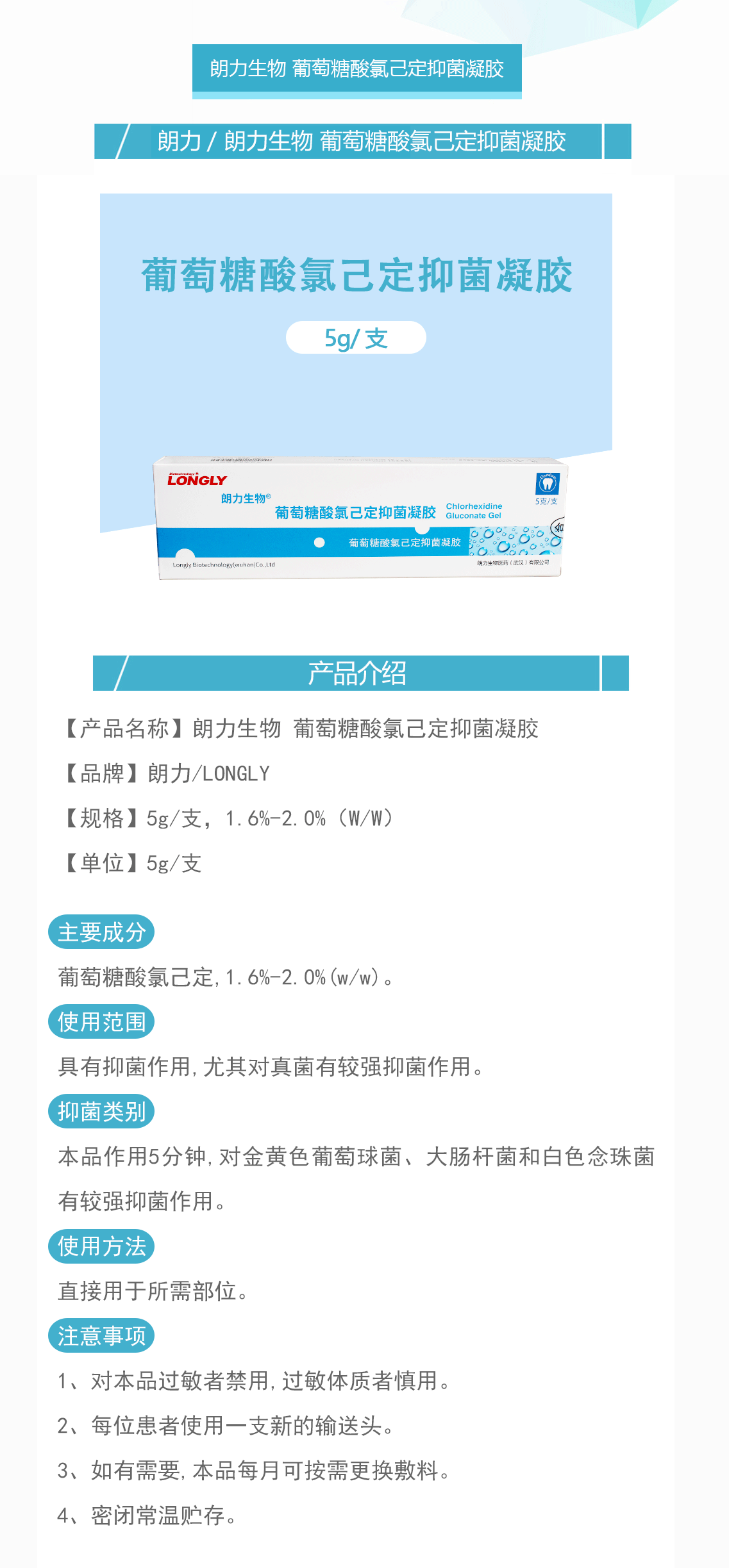 产品名称:朗力生物 葡萄糖酸氯己定抑菌凝胶
