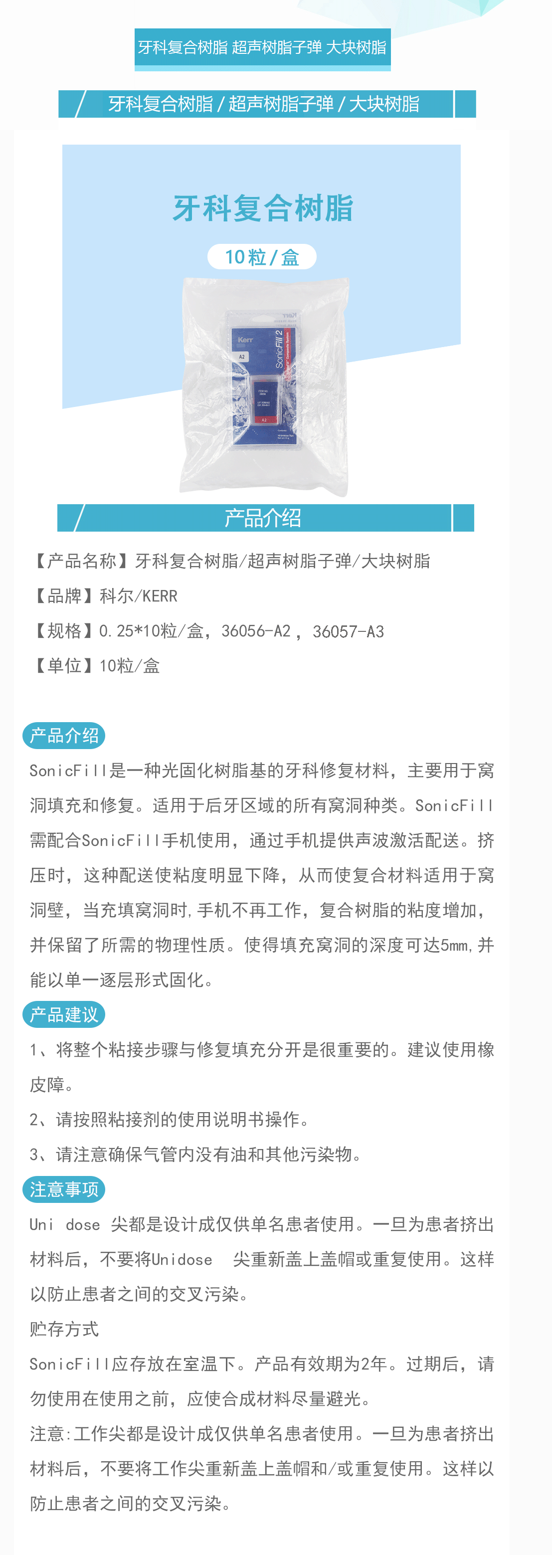 产品名称:牙科复合树脂/超声树脂子弹/大块树脂