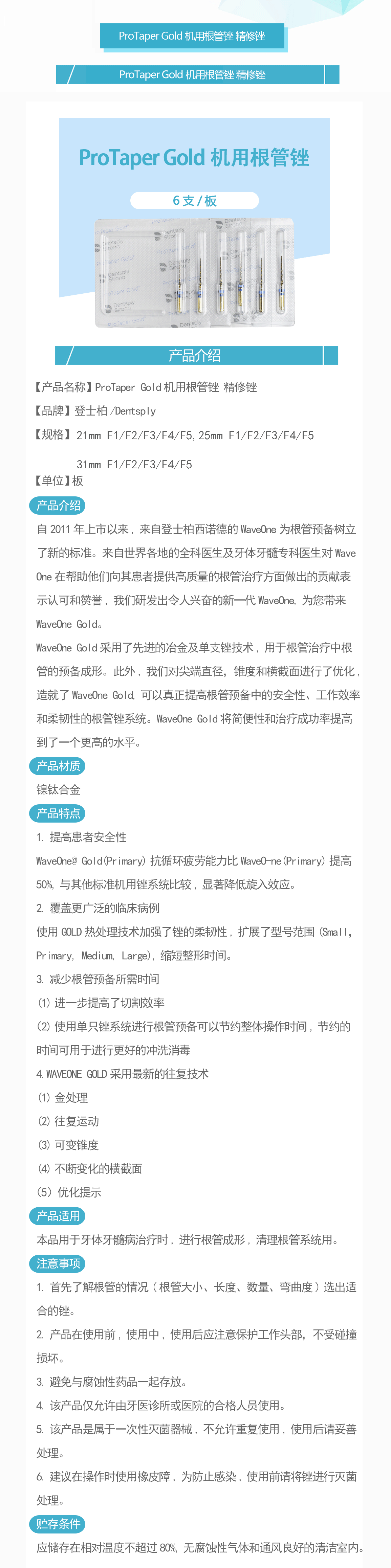 产品名称:ProTaper Gold机用根管锉 精修锉