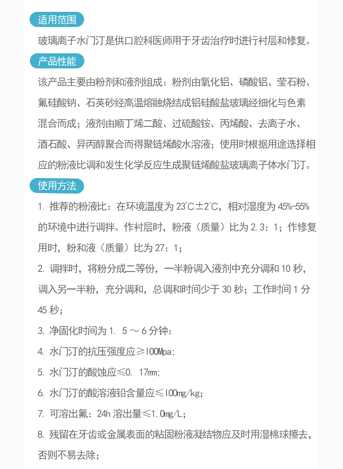 新世纪 玻璃离子水门汀(垫底+洞衬)I型 2#,内含:35g粉+20mL液