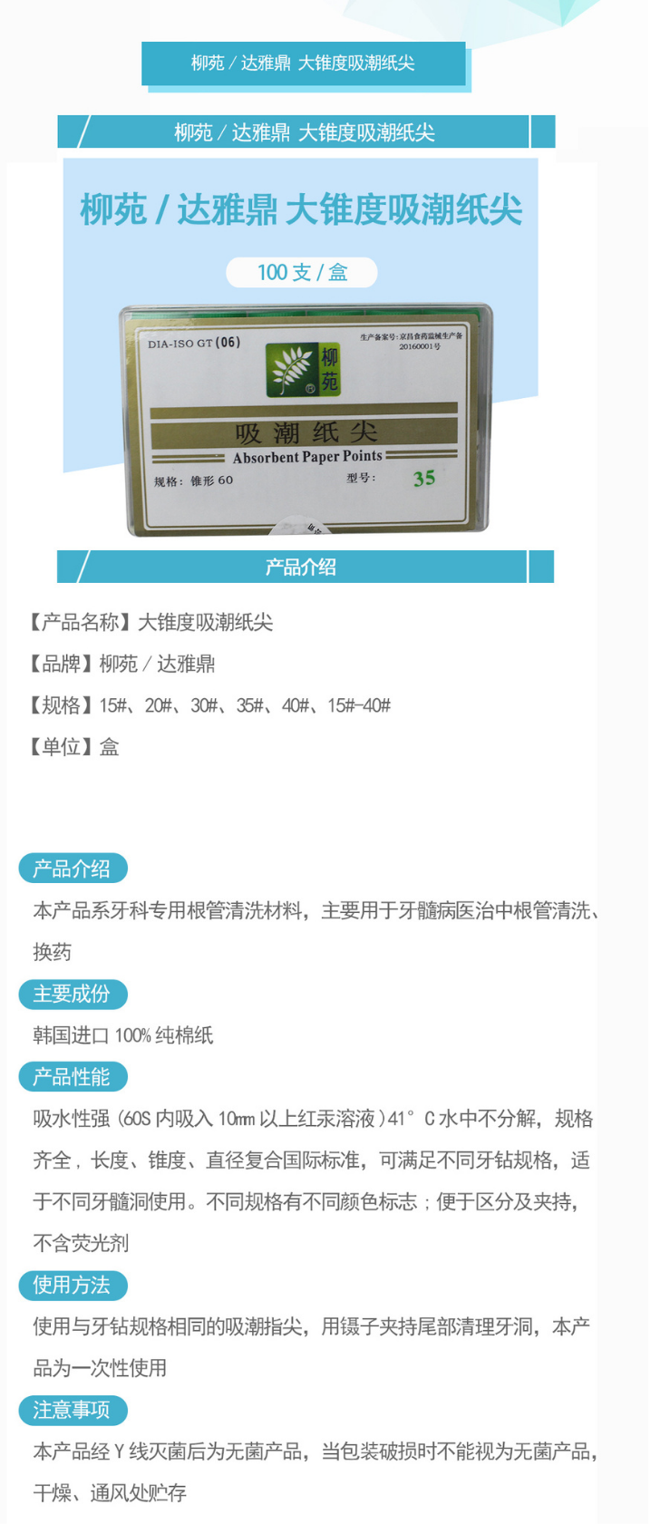 产品名称:柳苑/达雅鼎 大锥度吸潮纸尖 0.06