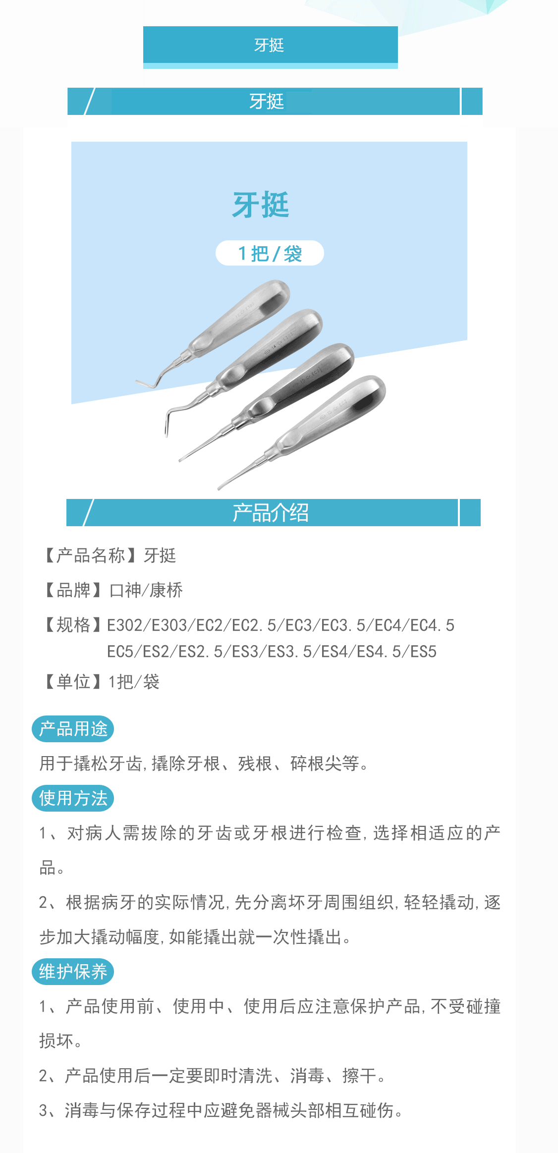 产品名称:牙挺 大手柄