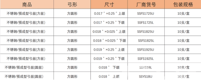 有研亿金 预成型弓丝(不锈钢丝) 方圆型 10根/盒