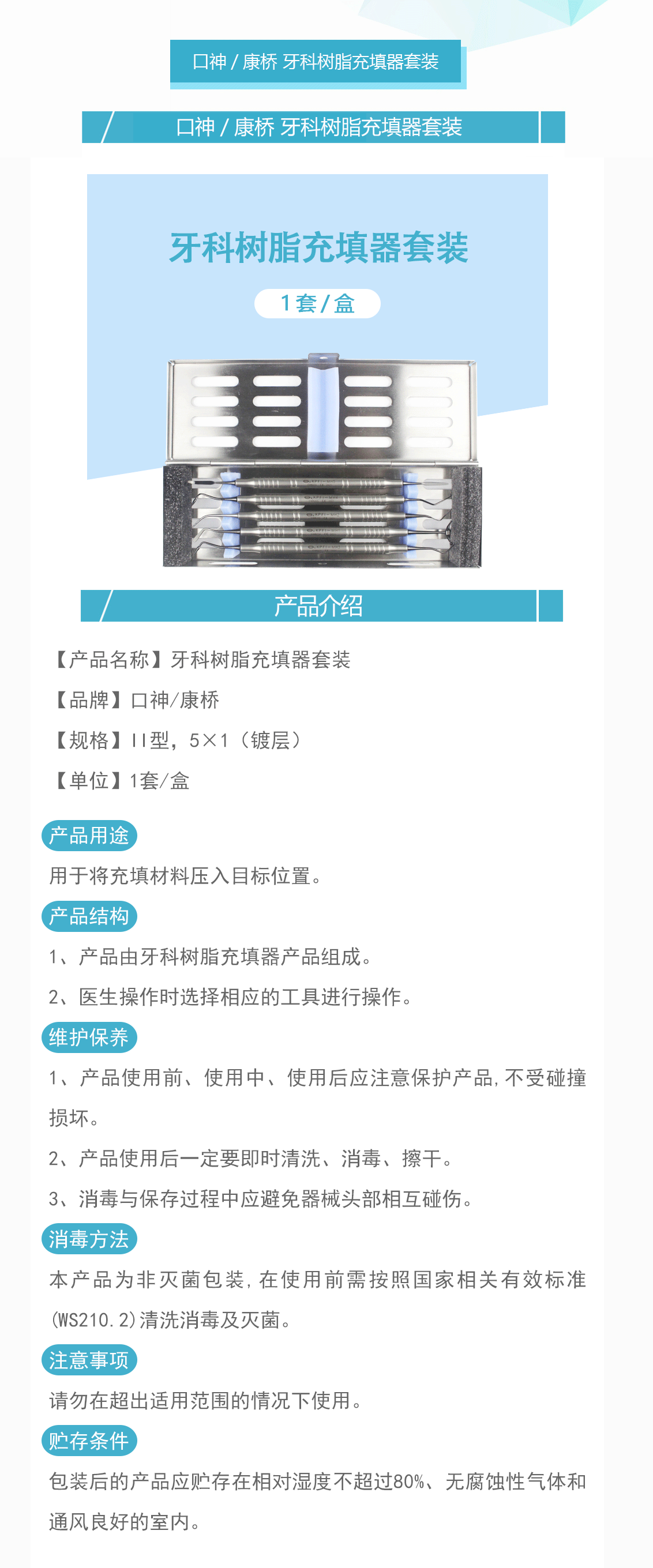 产品名称:牙科树脂充填器套装 II型,5×1(镀层)