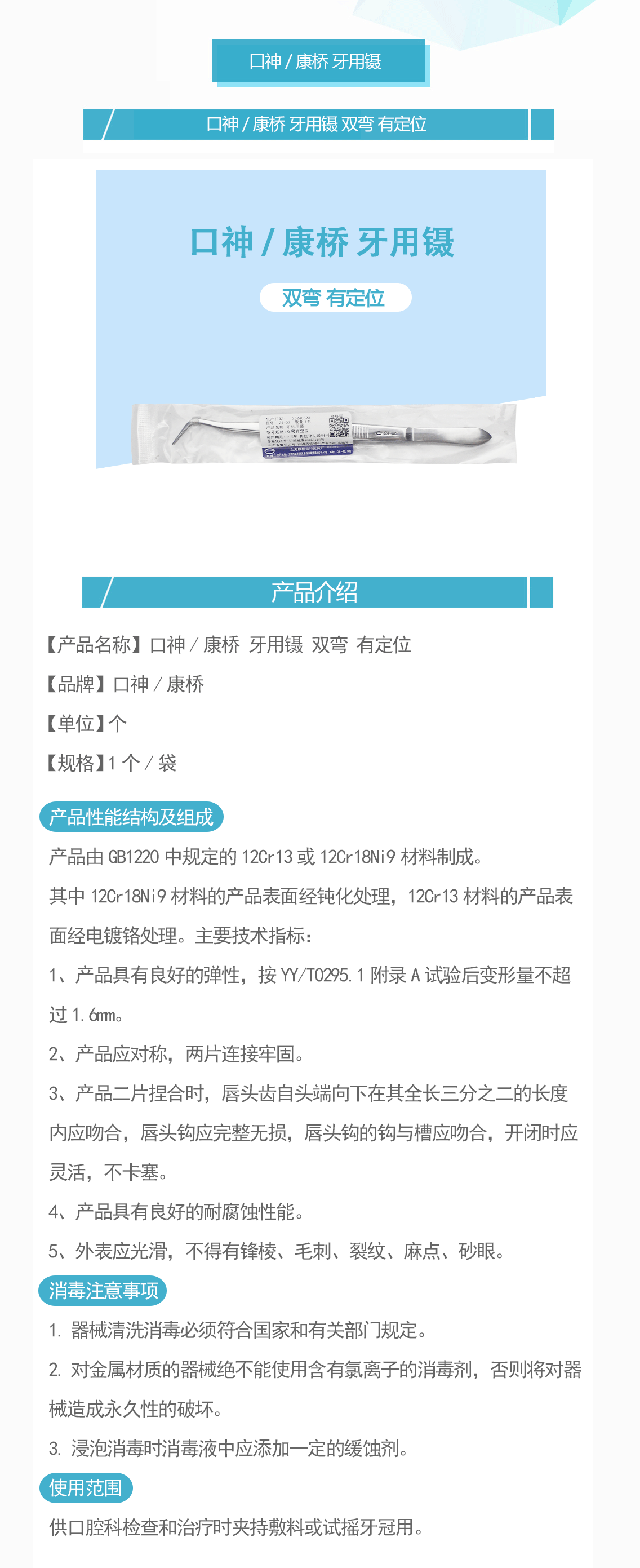 口神/康桥 牙用镊 双弯 有定位 090-0201