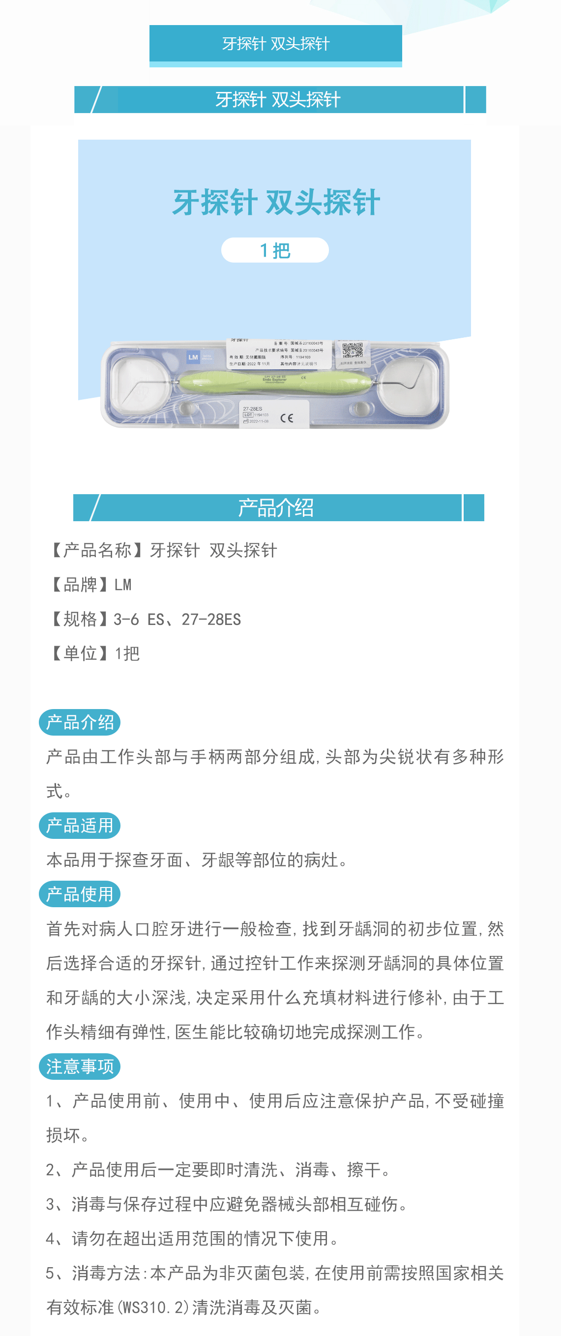 LM 牙探针 双头探针