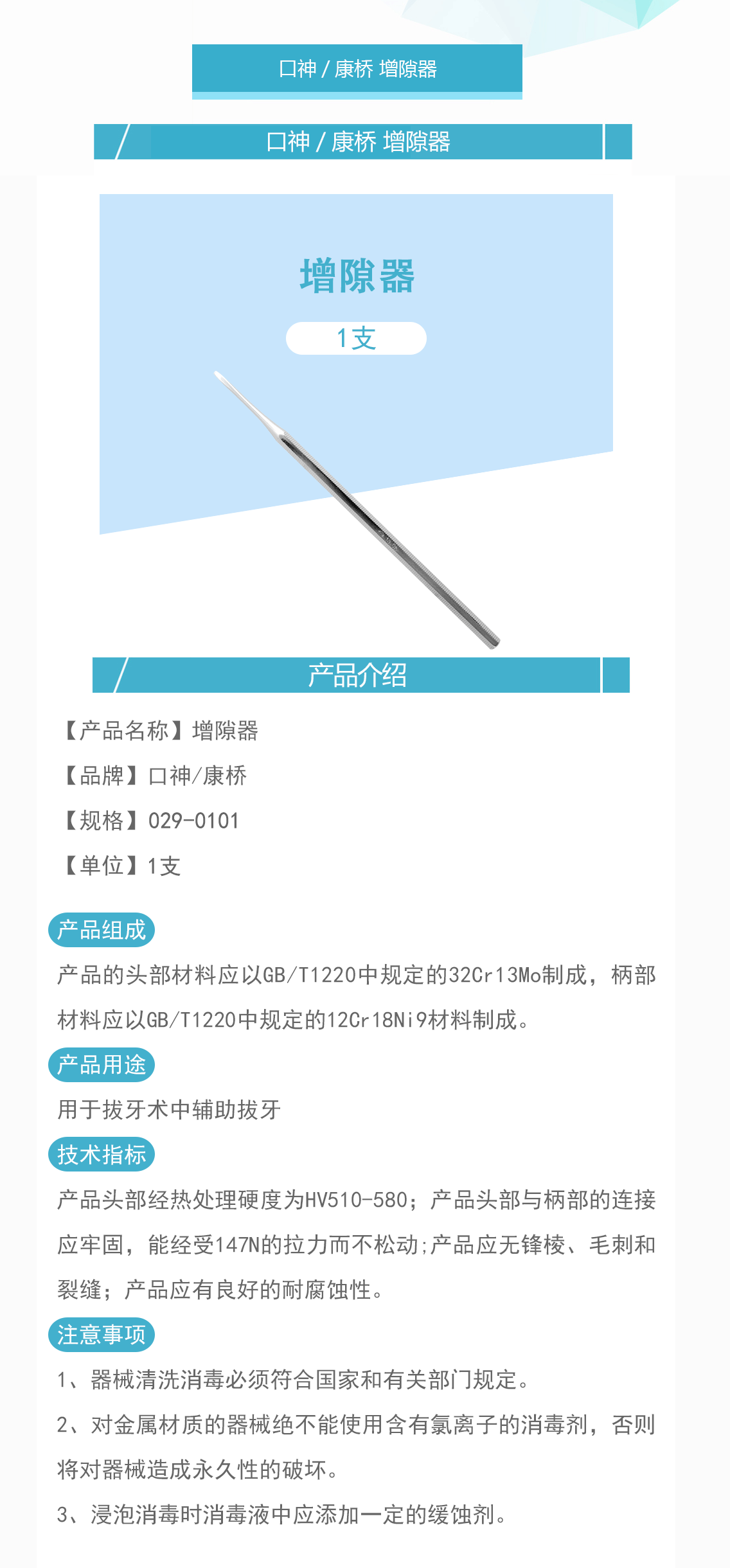 产品名称:增隙器 029-0101